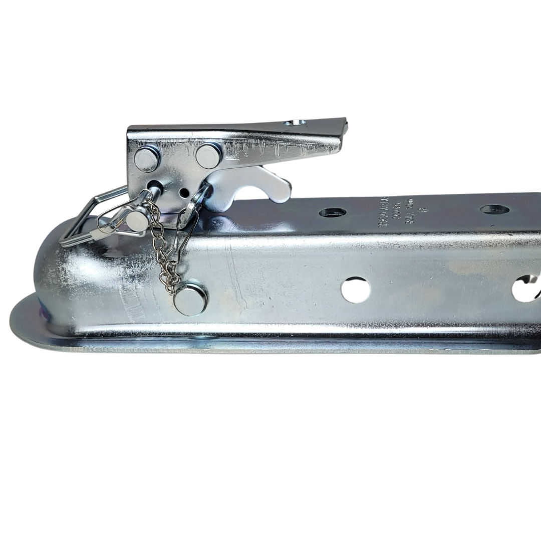 Engate estampado de alta resistência, desenvolvido para reboques, carretinhas e trailers. Produzido em aço estampado com acabamento zincado, garante durabilidade, resistência à corrosão e encaixe preciso na bola de 50mm.
